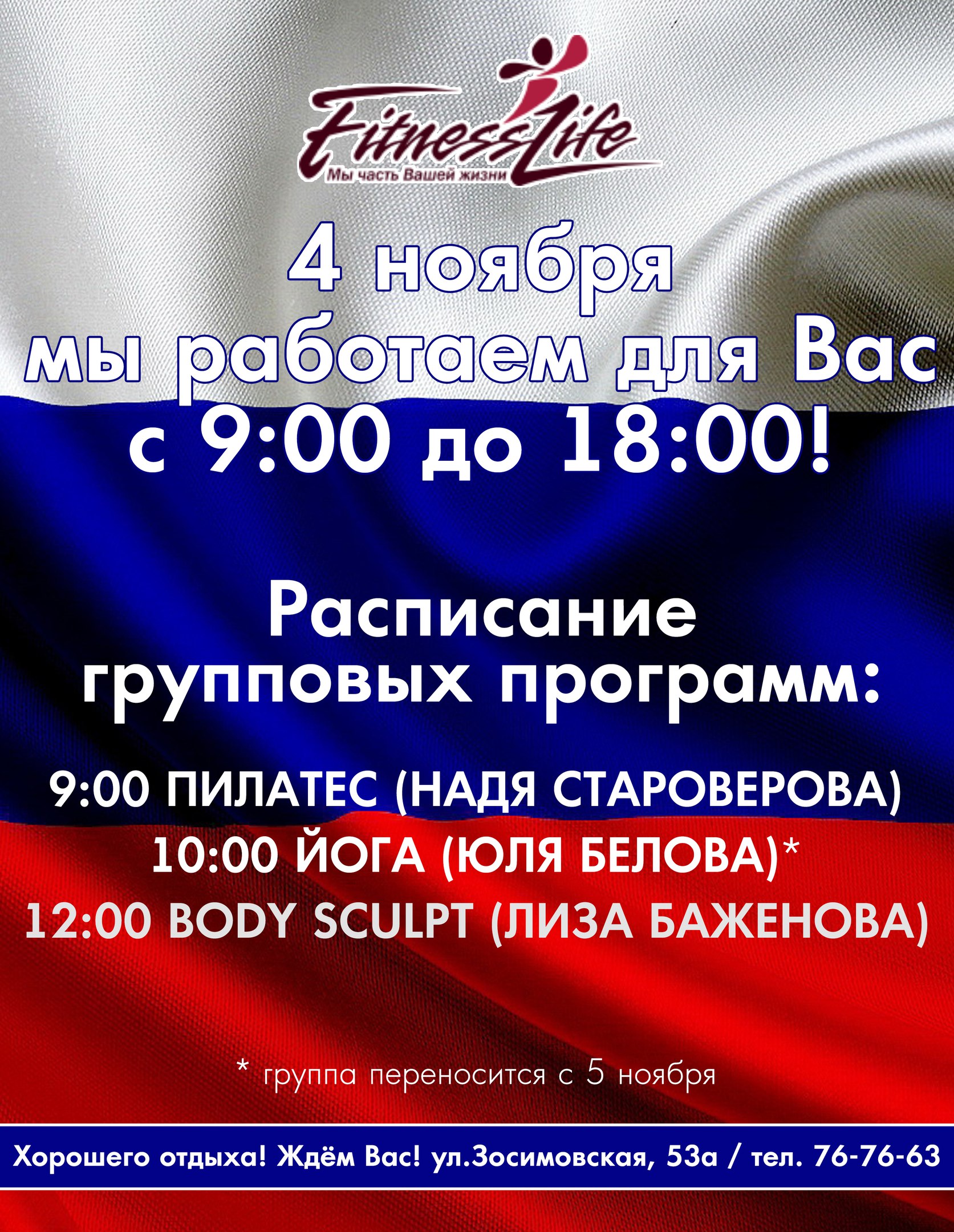 Режим работы Клуба на 4 ноября 2016 года, 5 и 6 ноября Клуб функционирует по стандартному расписанию.
